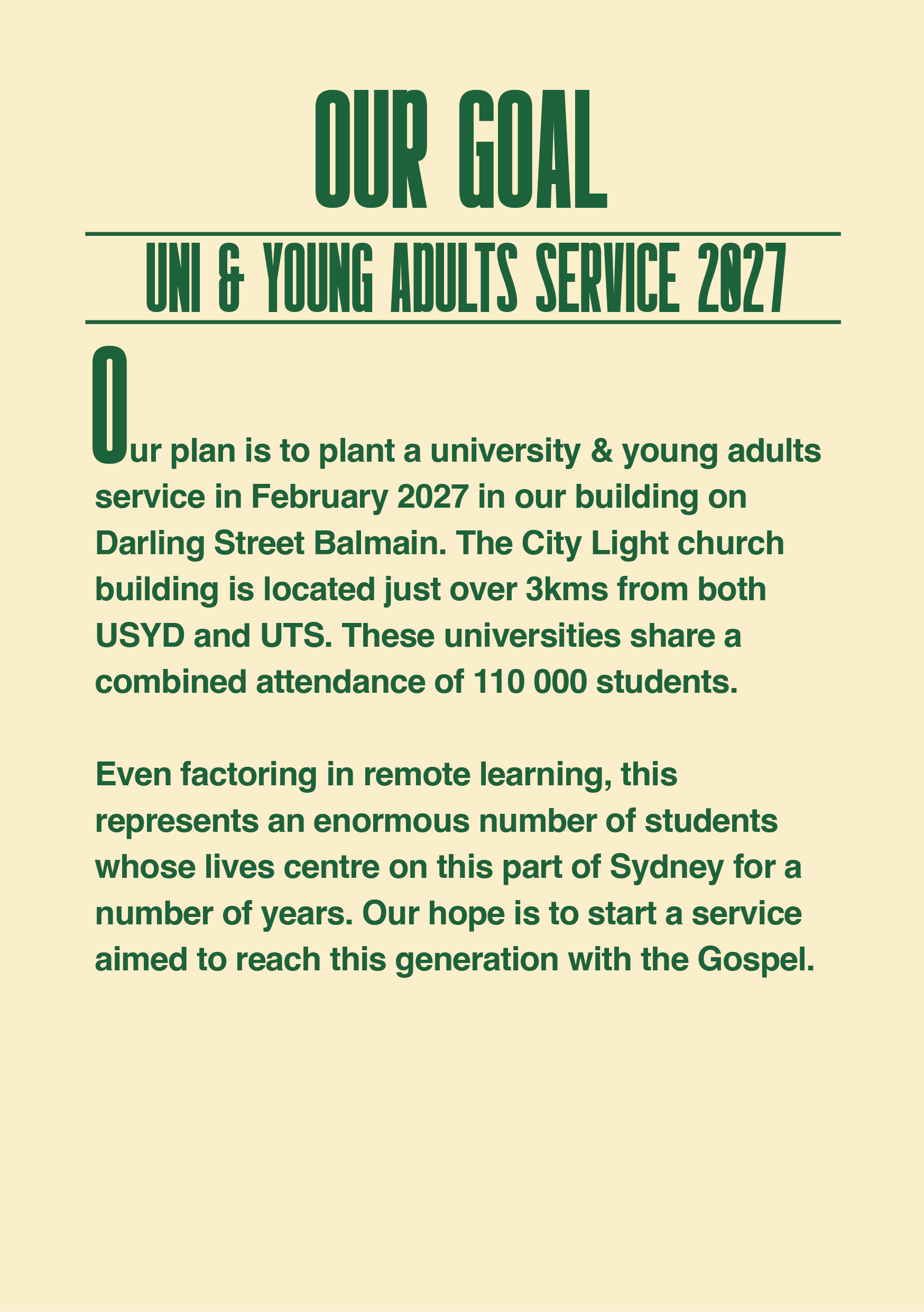 On Sunday we announced our plan to plant a new Uni-Age / Young Adults service in 2027 and to begin praying and building toward that vision now.